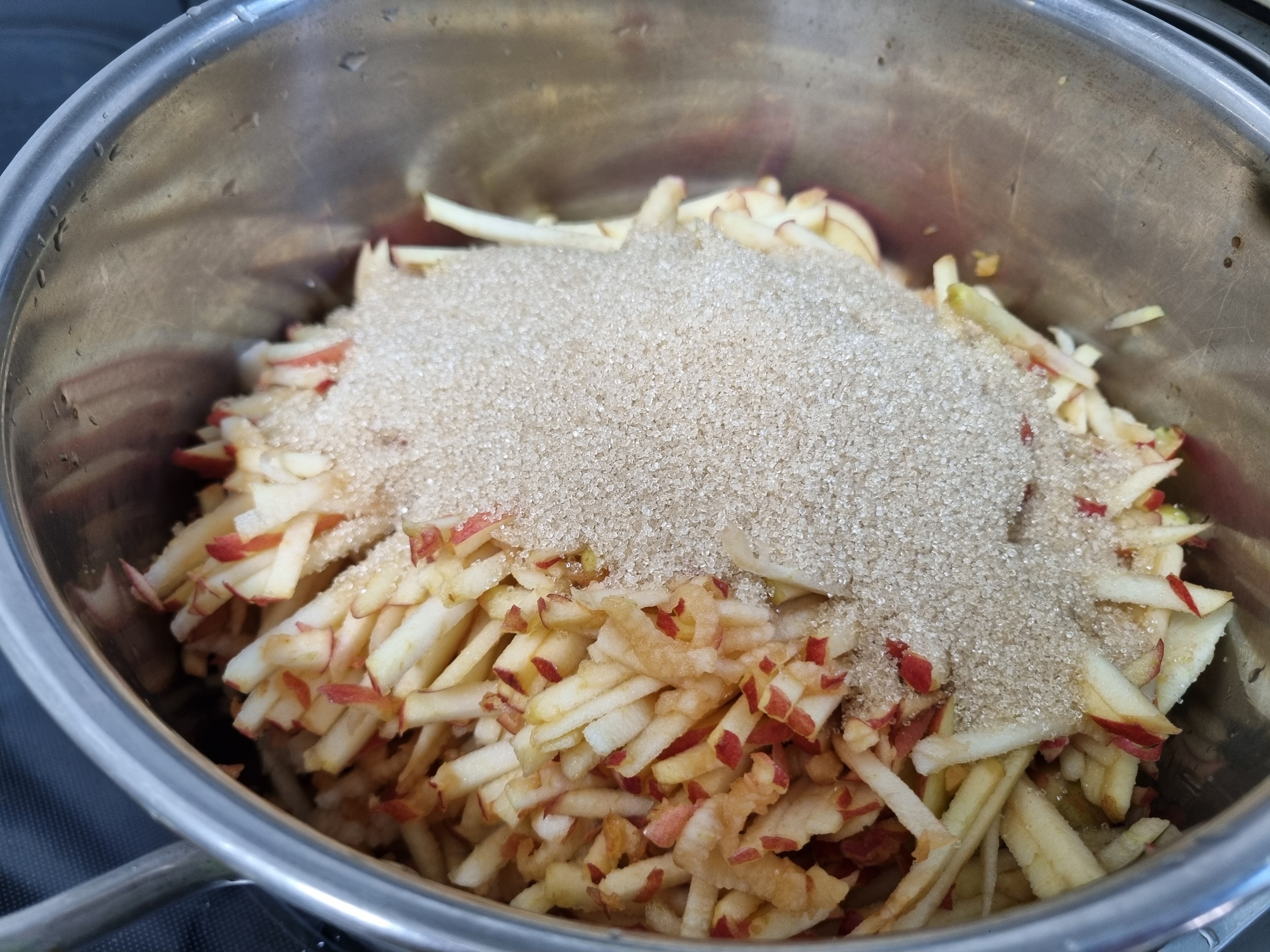 (사과 950g, 유기농 설탕 300g으로 사과 잼을 만들었다)