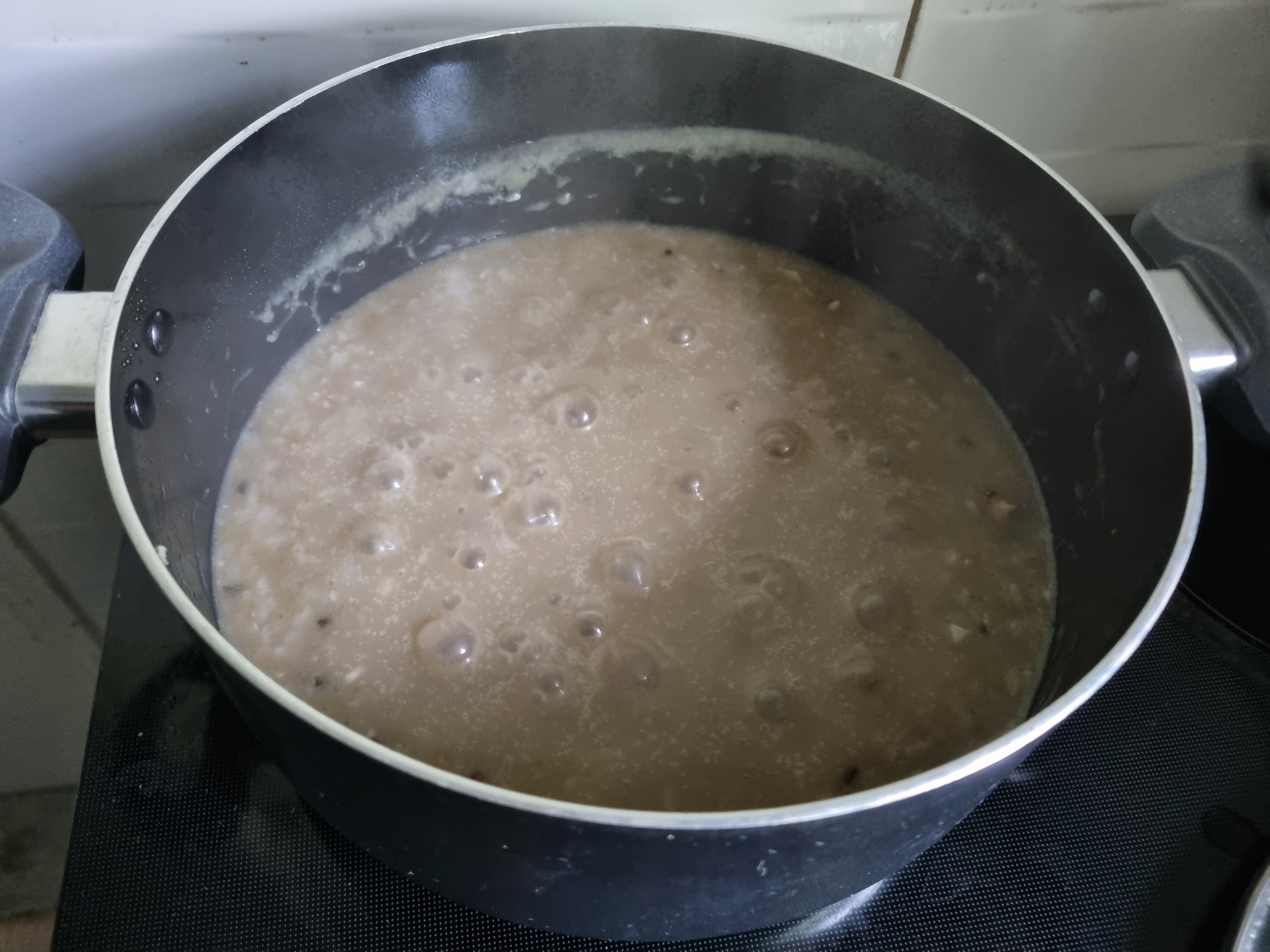 물을 5~6배쯤 넉넉히 잡아 마냥 끓였다 (잡곡 쌀이 부드러워짍 때까지)