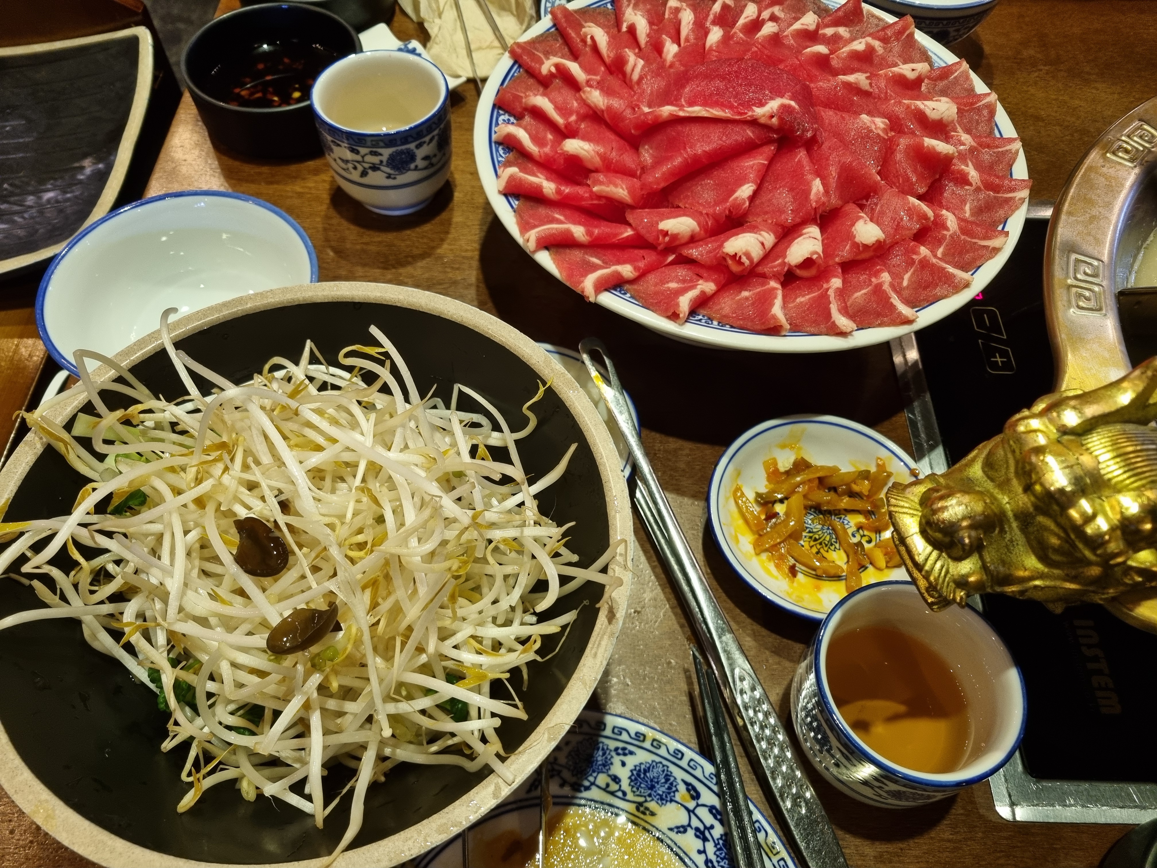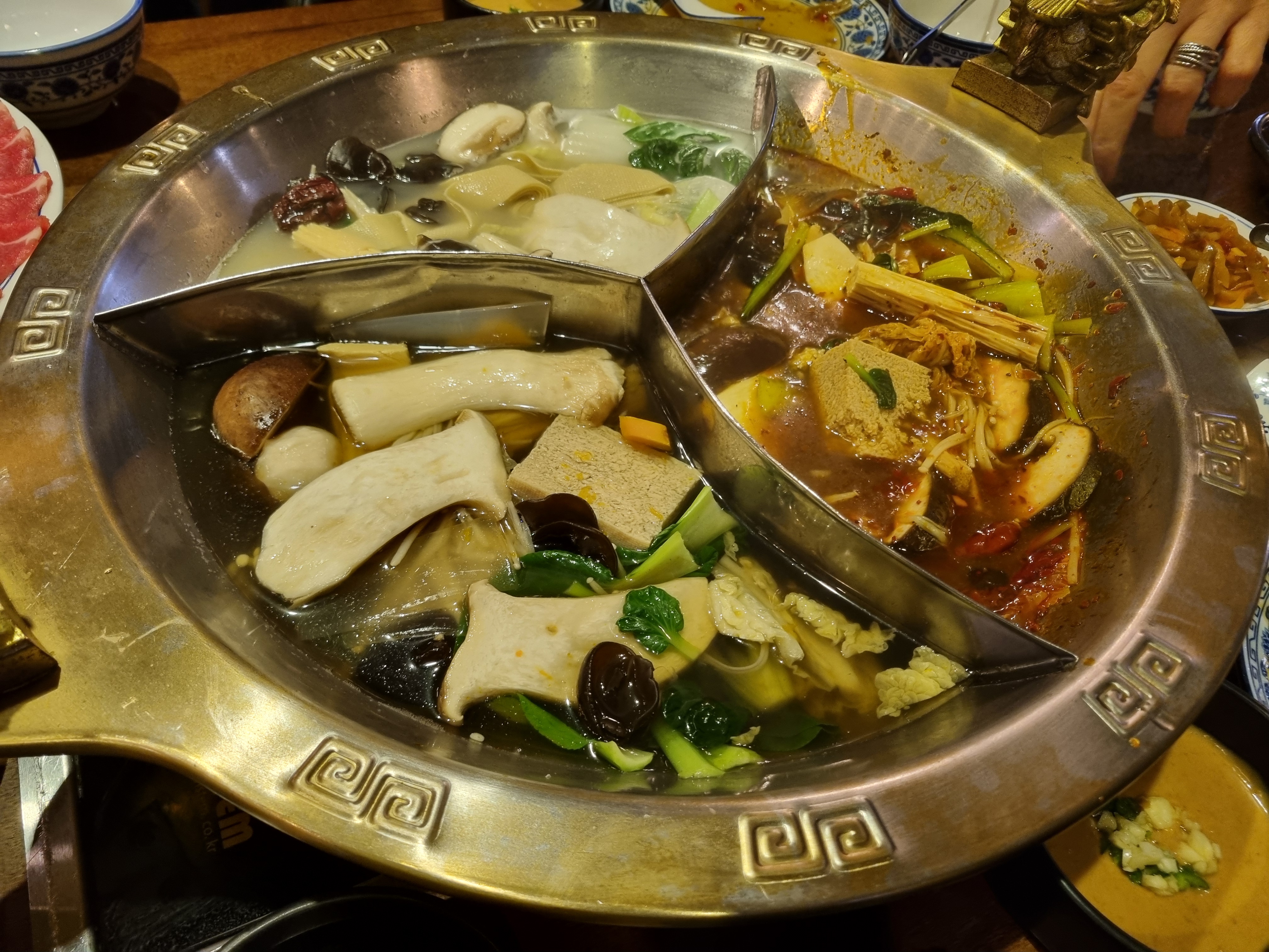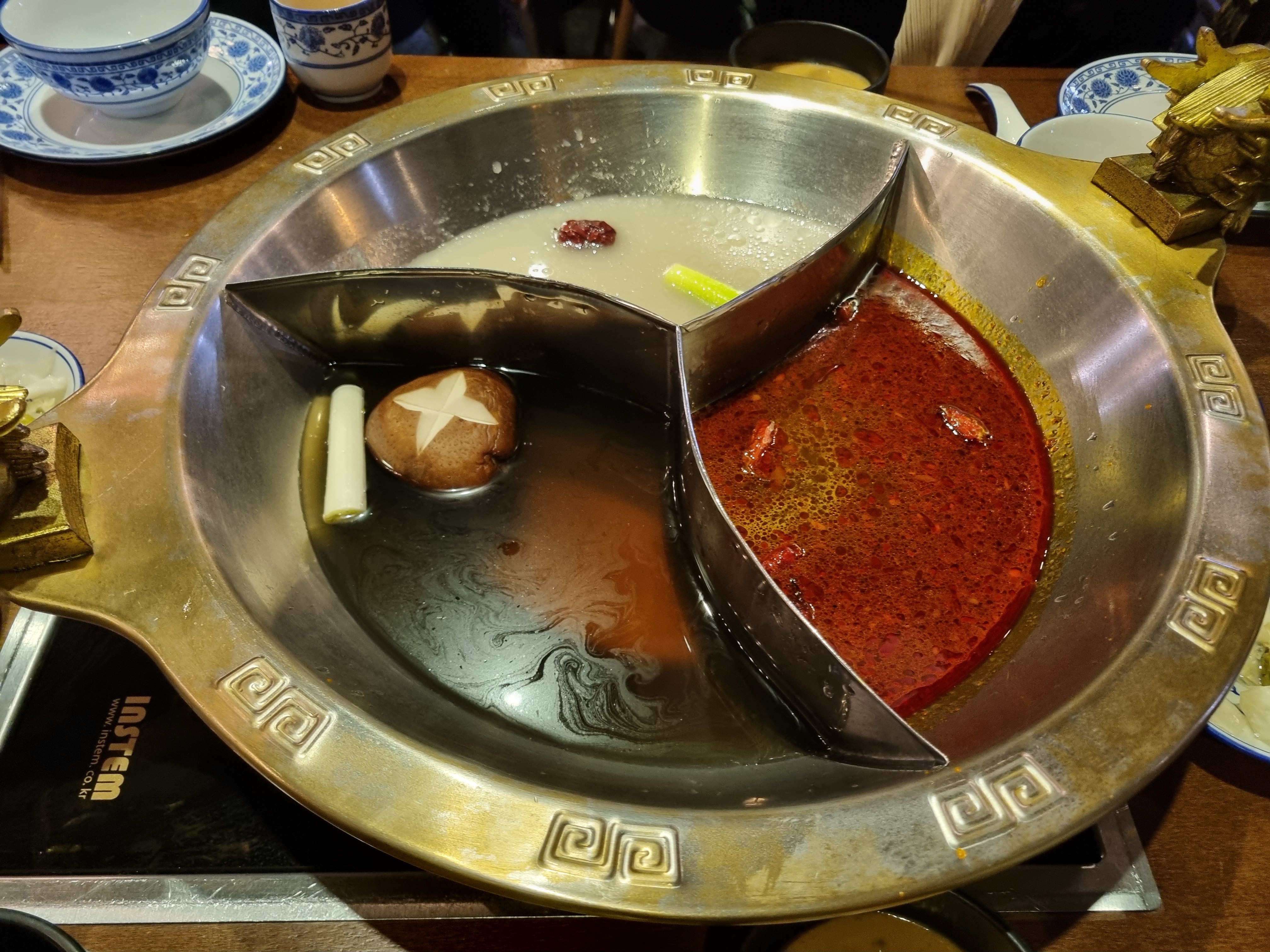 밑면은 좁고 넓직하게 담긴 훠궈 육수는 끓는 시간이 생각보다 아주 오래 걸렸다