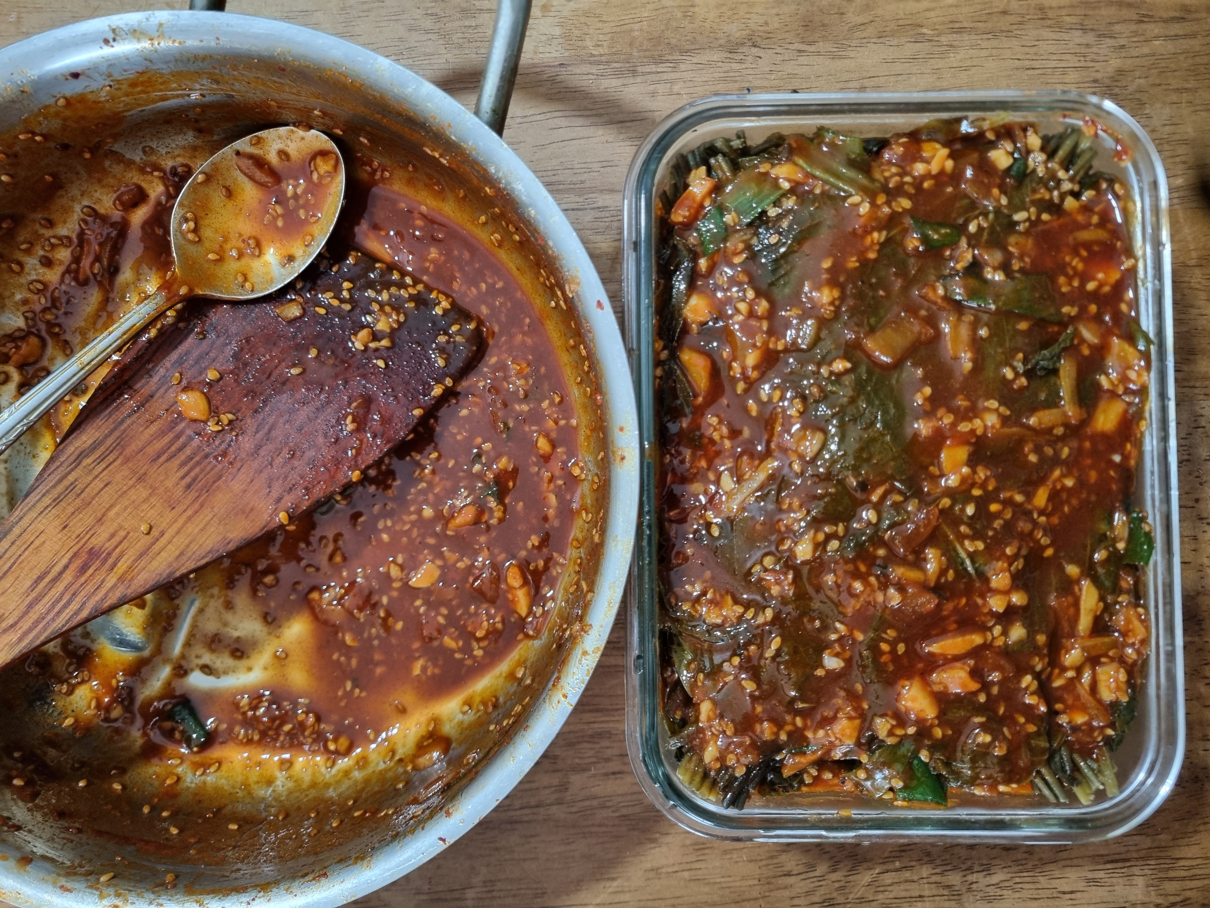 아침에 단풍 깻잎 장아치. 애호박 볶음. 오징어채 볶음.