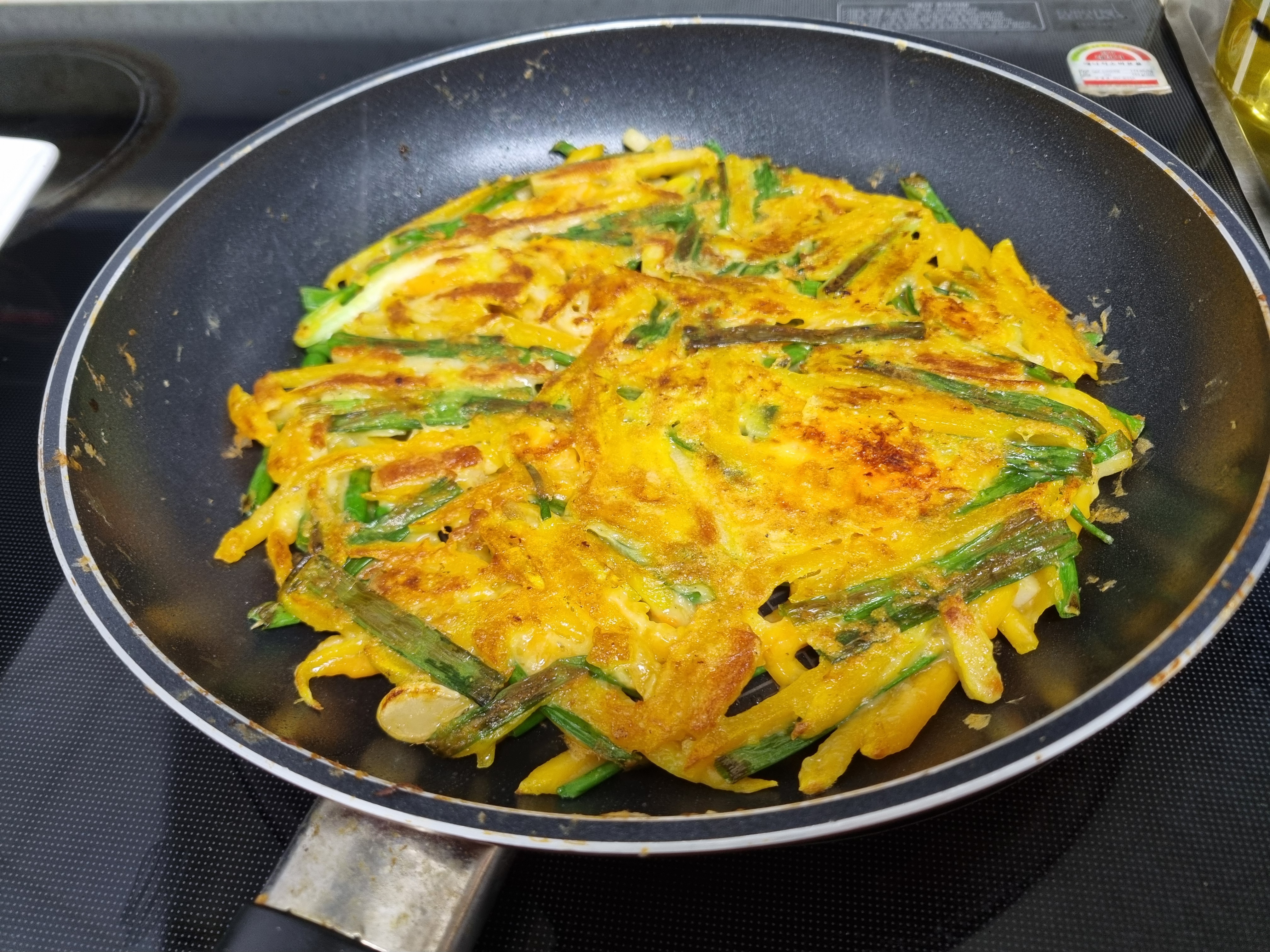물 120cc로 부침 반죽 만들어 전부쳐 아침으로 잘 먹었다