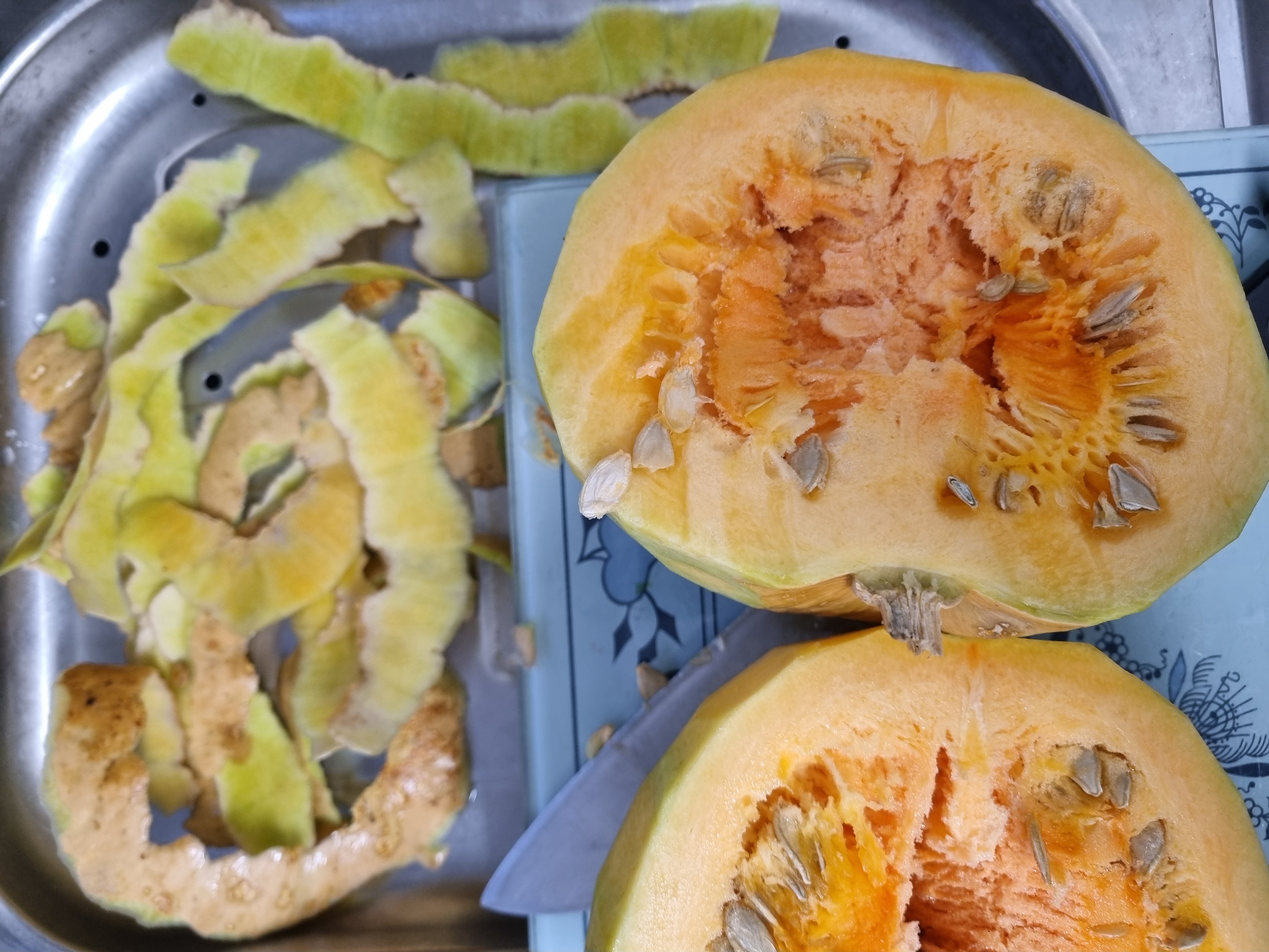 이전에 와서 15개쯤 호박을 갈무리해 그중 절반쯤 가져왔다