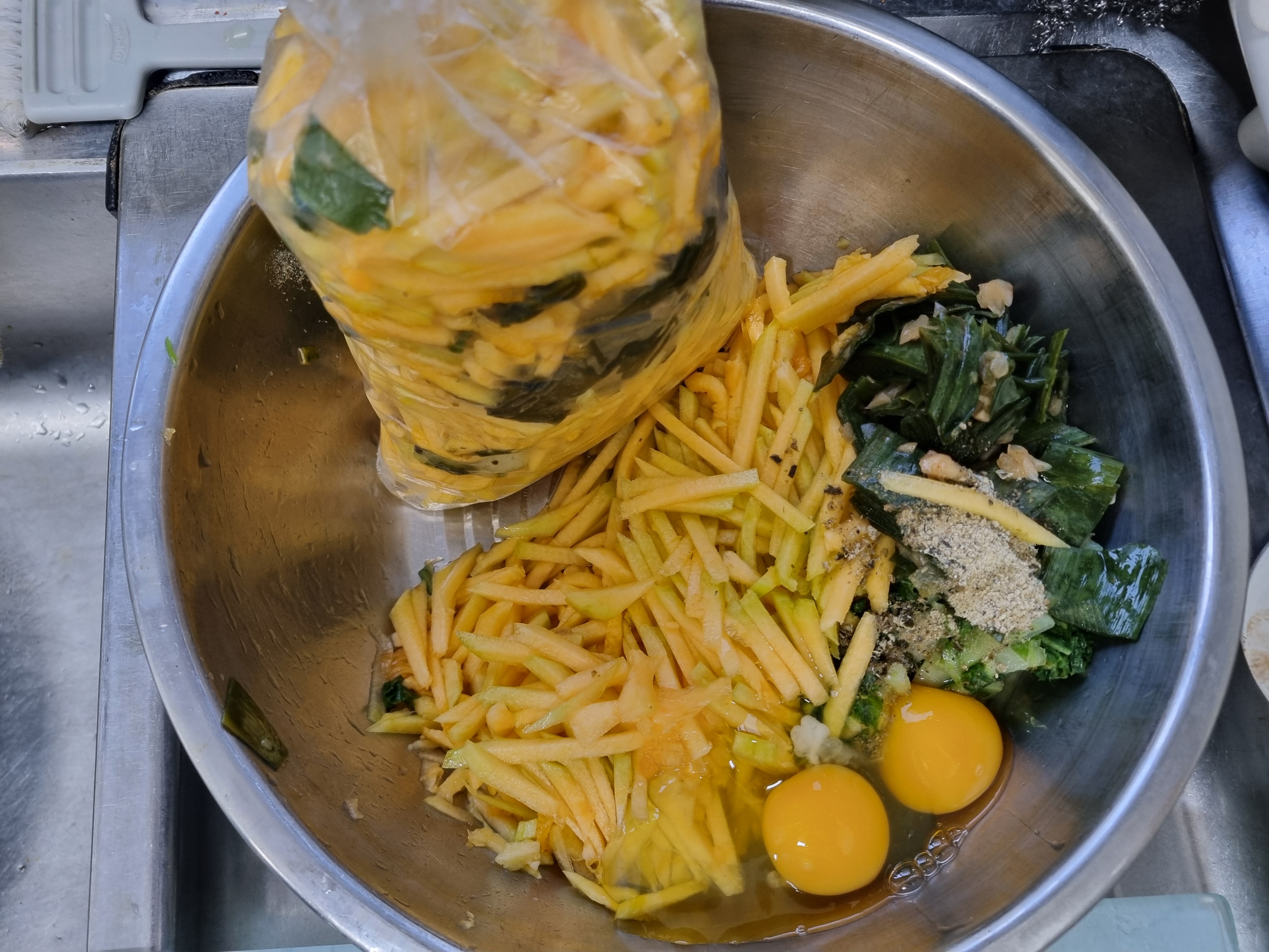 챙겨와 호박전 만들어 아침 식사로 먹는다