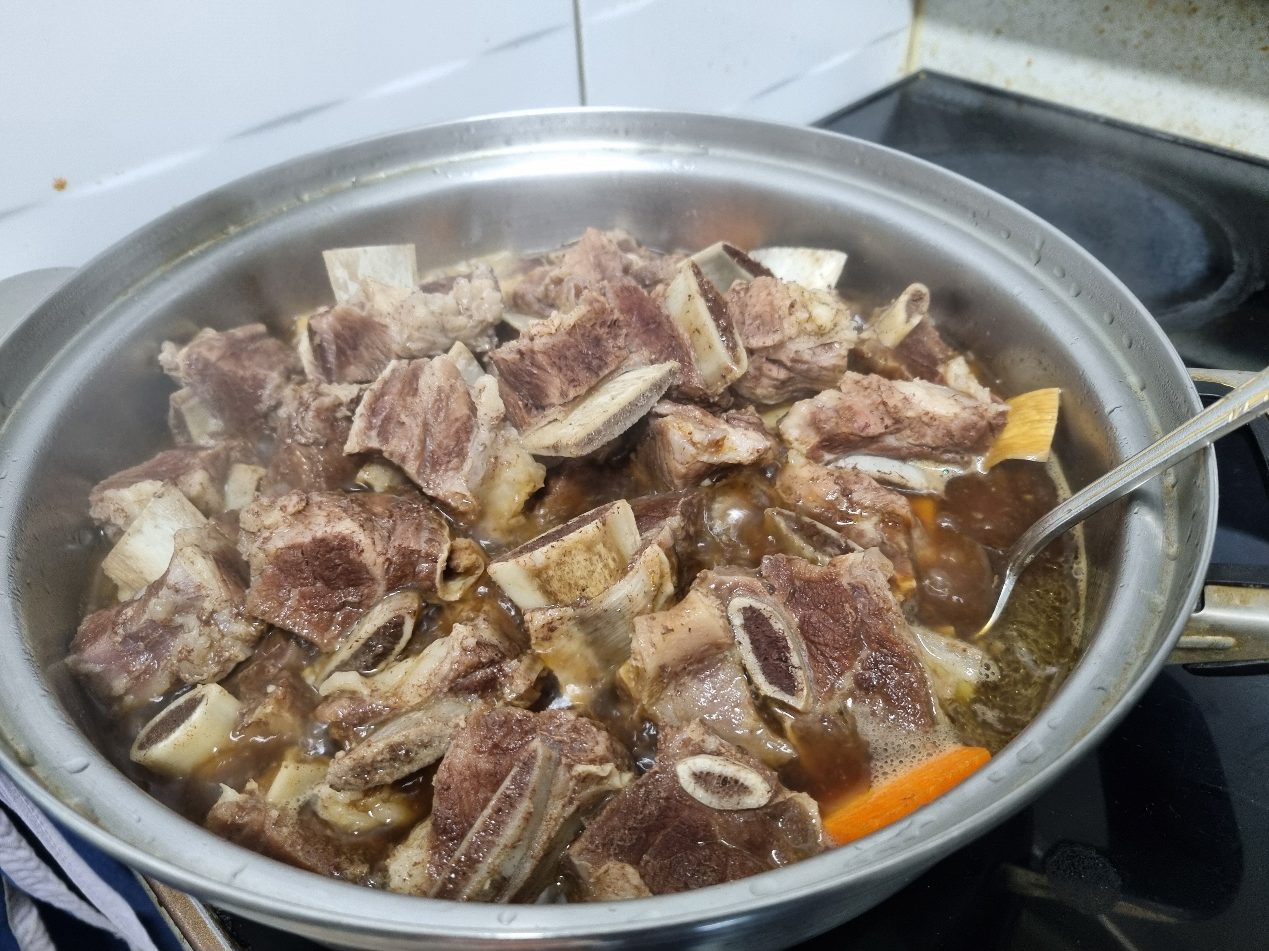 일산 장날이라 피아노 교습 끝나면 장을 보러 가기로한다 오늘 구입 하고자 하는 건 미국산 LA 갈비로 100g당 1250뭔하는 비교적 상품성이 떨어지는 고기다 신선도기 좋아 지난번 사다 아주 맛있게 먹었기 때문에 재구입 하기로했다 그상점에 가니 김장철이라고 수육용 돼지고기를 많이 쌓아 놓고 판매한다 갈비를 찾으니 안으로 안내하여. 찾아 보아도 없다 호주산 찜 갈비도 맛있다기에 한몫샀다 호주산 갈비를 안사봤기에 부페집 갈비 보단 맛있어야는데 했더니 엄마가 하면 더 맛있을거란다 ㅡ ㆍ ㅡ ㆍ ㅡ ㆍㅡ ㆍ ㅡ ㆍ ㅡ 조리 들어간다 (갈비의 양은 1.2k 조금 넘는 걸 2만원에 샀다) 반신반의 하며 몇번 물을 갈아 주며 핏물을 뺀 뒤 딸랑이 압력솥에 물 넉넉히 잡고 우스타 소스. 배 소주. 파뿌리 소주. 다시마..
